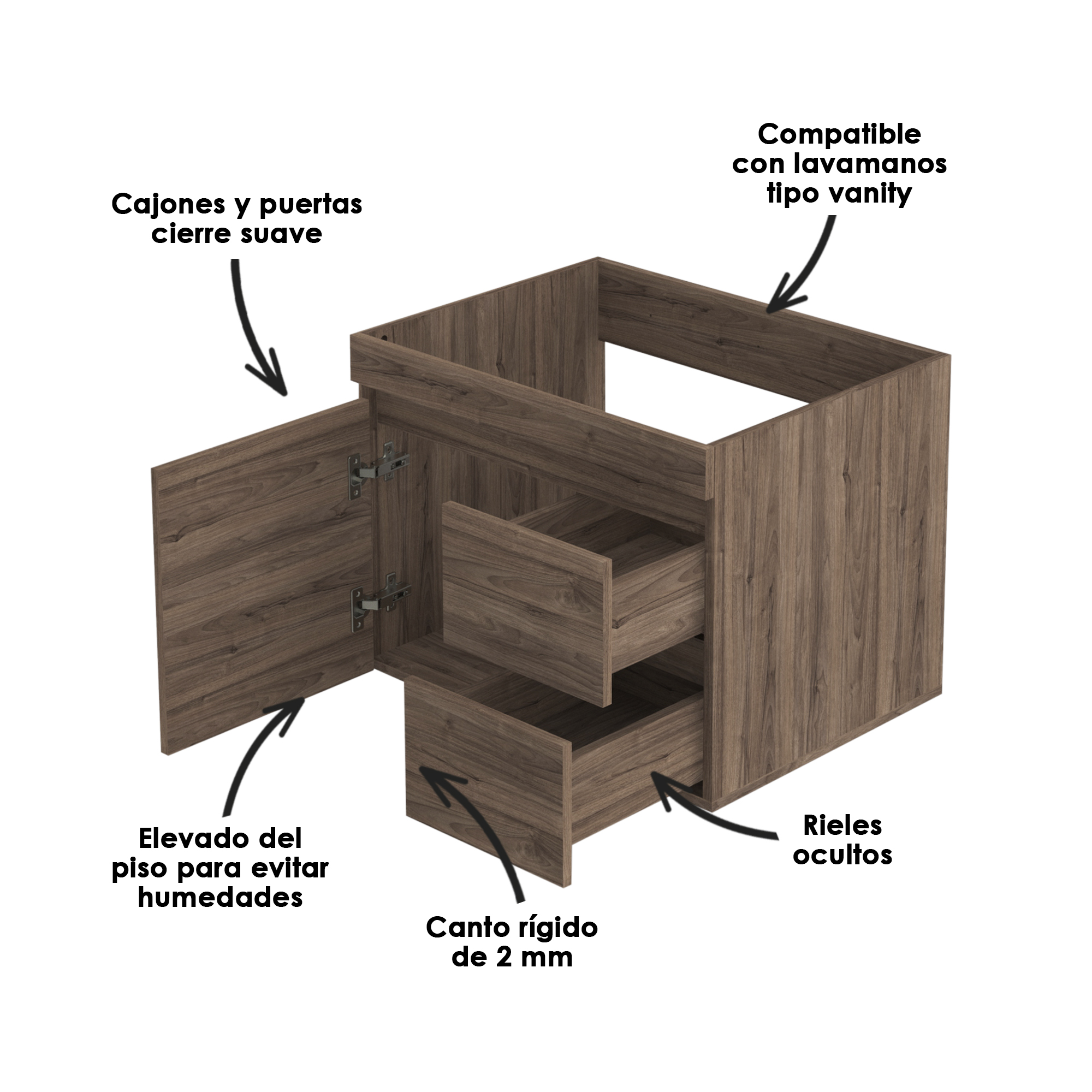 - Mueble elaborado en aglomerado de 15 mm enchapado en melamina.