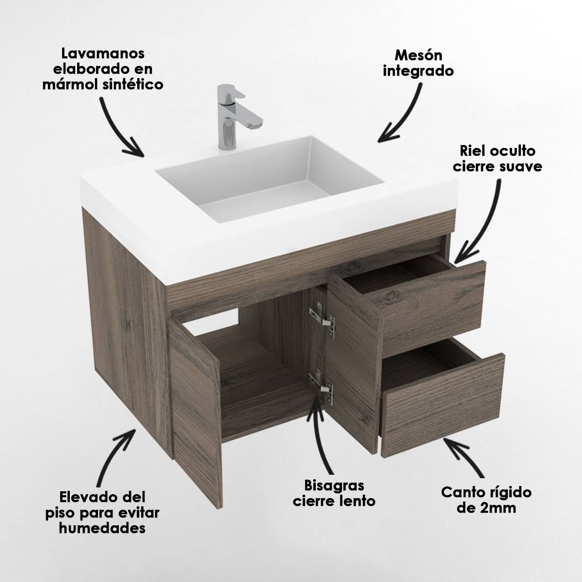 - Mueble elaborado en aglomerado de 15 mm enchapado en melamina.