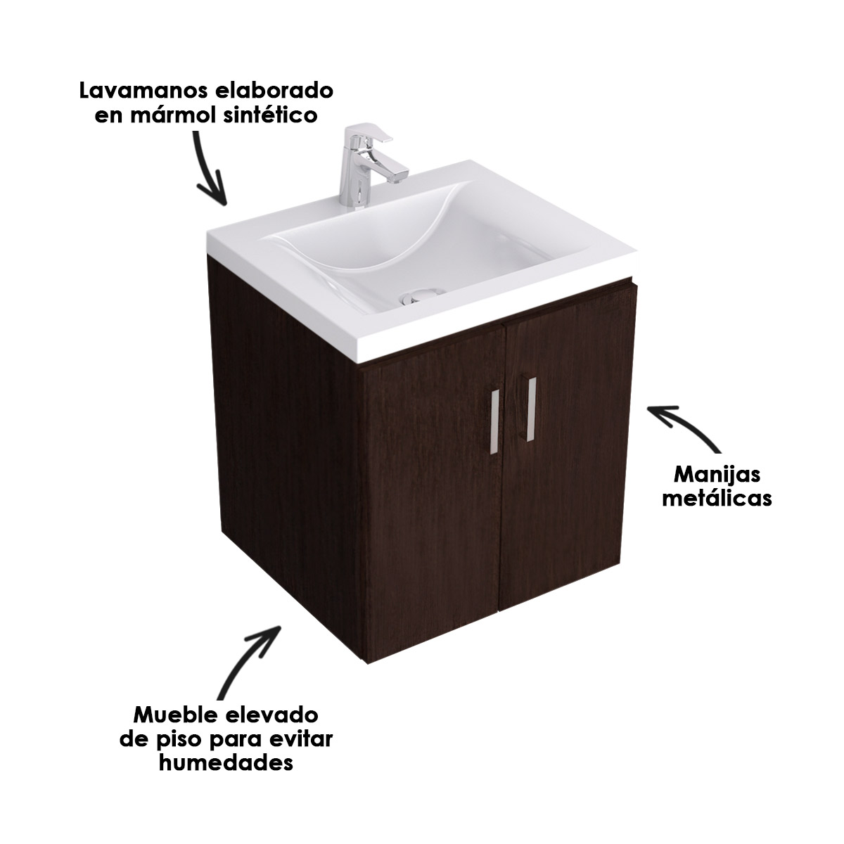 COMBO LAVAMANOS SIENA + MUEBLE BÁSICO ELEVADO 48X43cm WENGUE