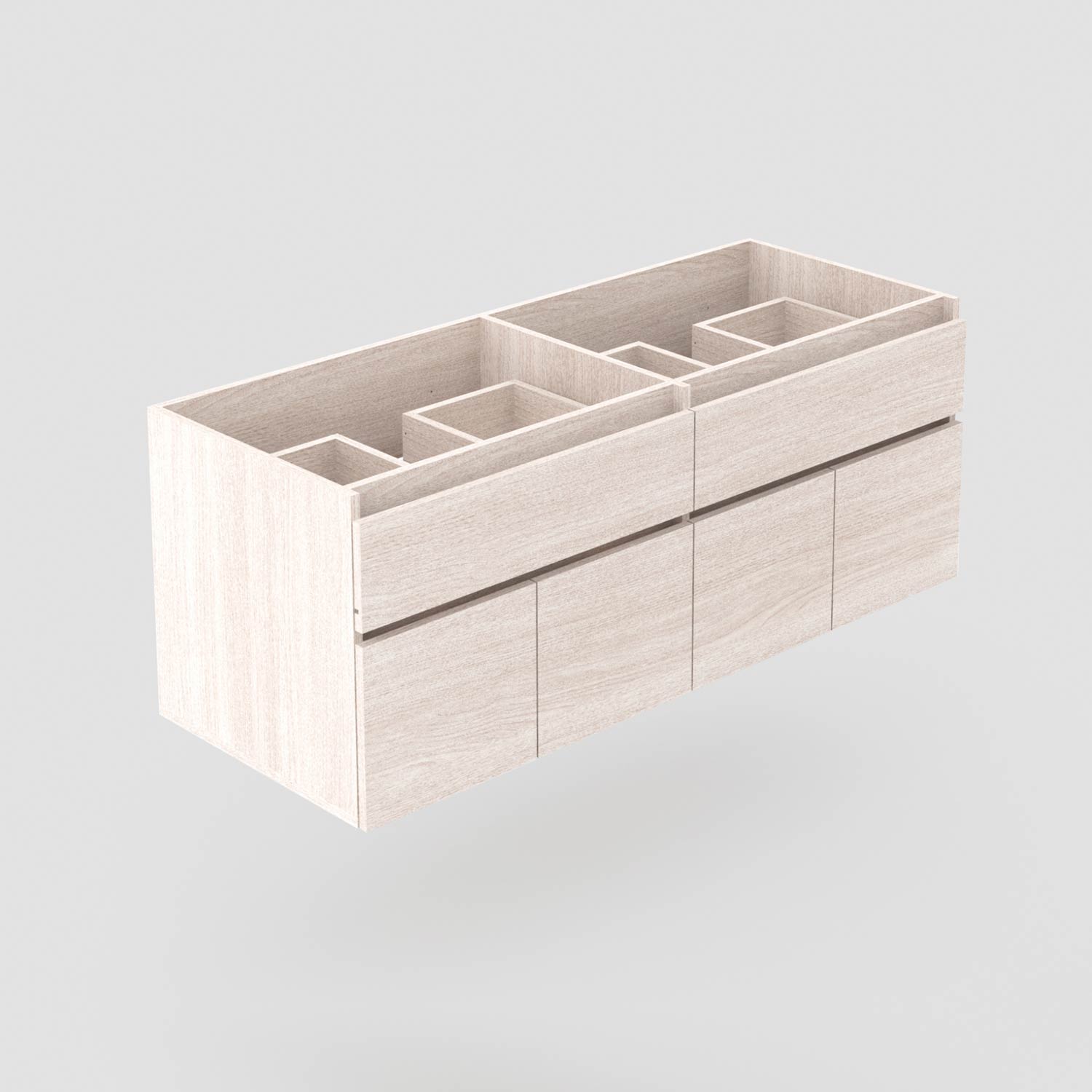 - Mueble elaborado en aglomerado de 15 mm enchapado en melamina, con canto de 2 mm en frentes