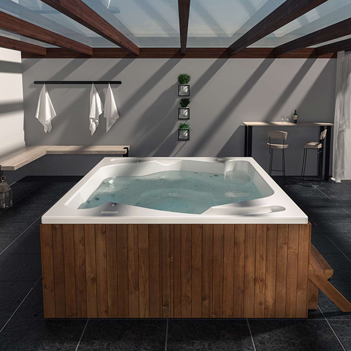 | Multi-person portable Jacuzzi (8 people) | Made of fiberglass reinforced polyester | Teak wood deck |