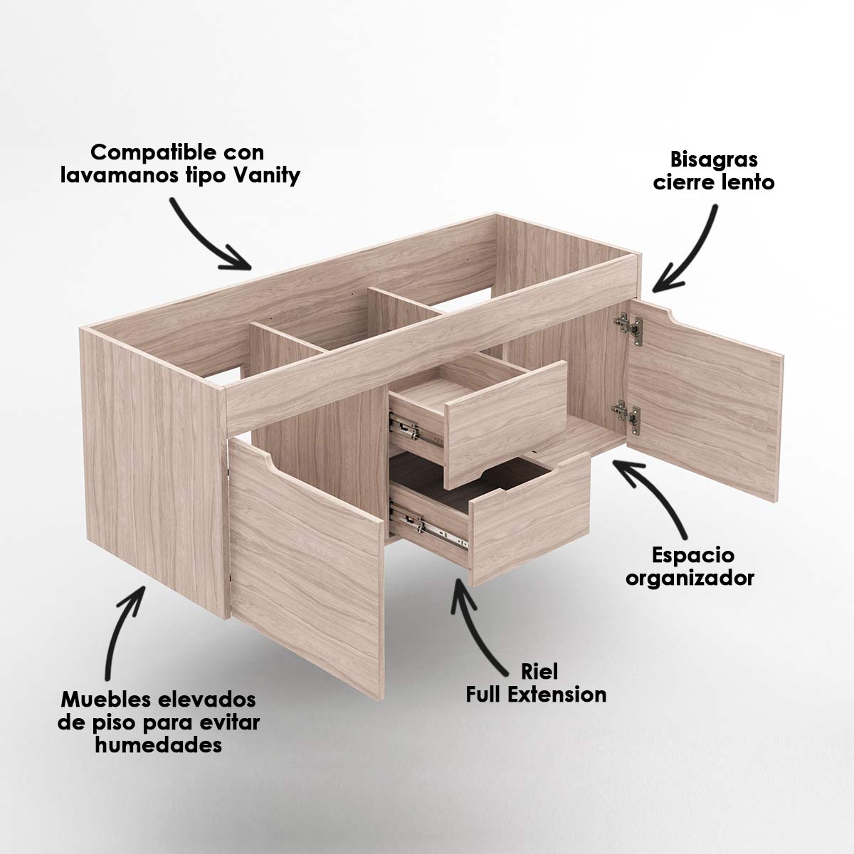 - Mueble elaborado en aglomerado de 15mm enchapado en melamina.