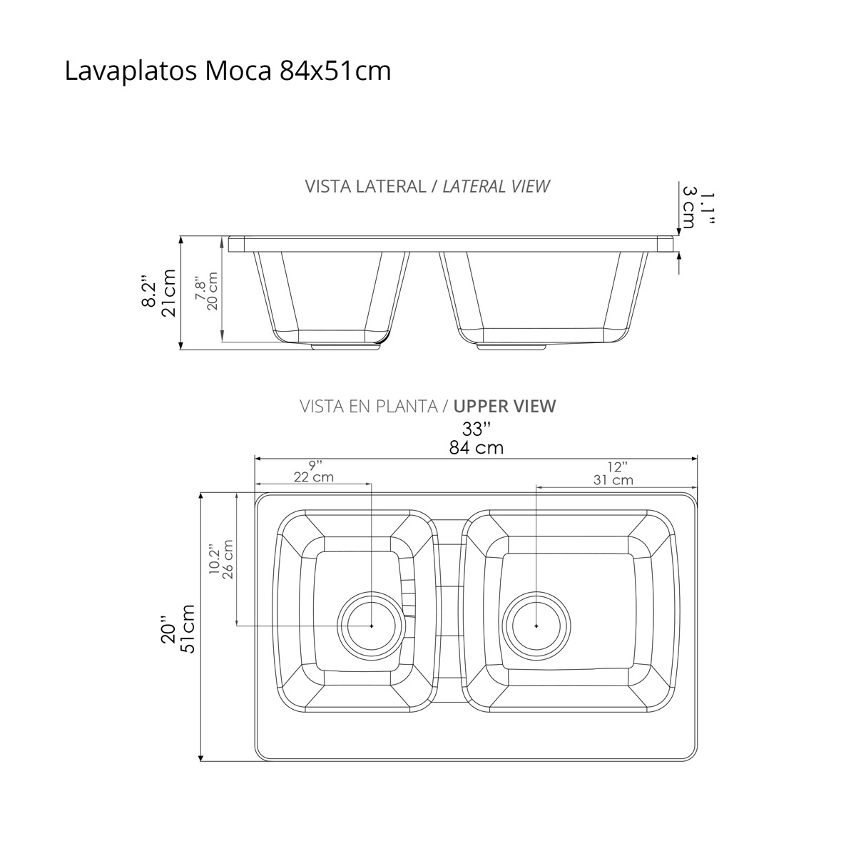 Moca es una mejor alternativa que el acero inoxidable. Este lavaplatos de sobreponer ofrece medidas, color y diseño únicos, que complementan perfectamente mesones de granito natural y quarztone.