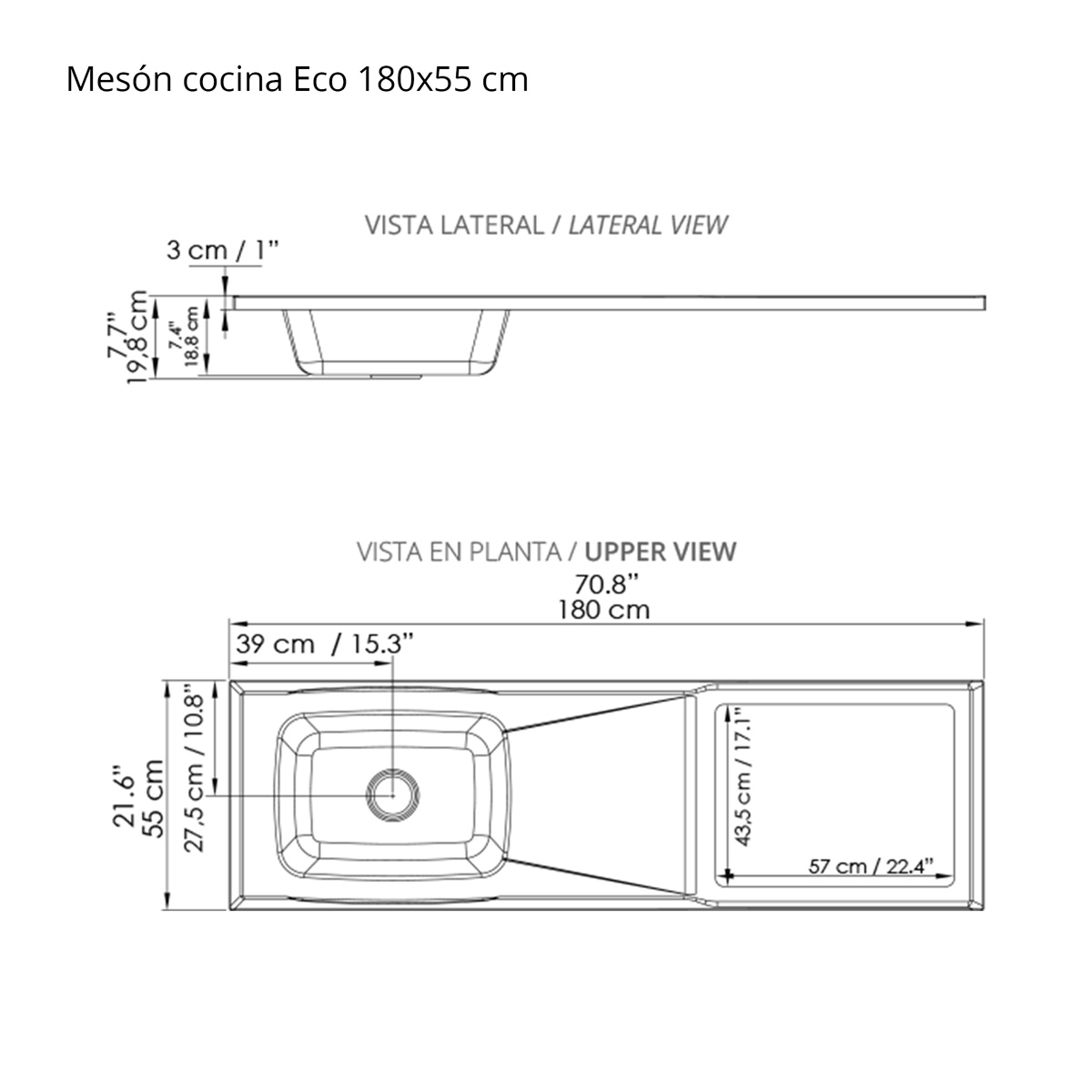 Technical specifications for eco kitchen countertop 180x55cm Descargar