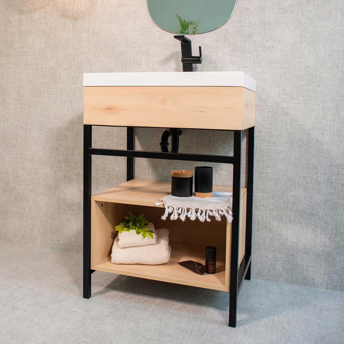 Perfect combination of a sink with a supporting cabinet and a cube. Create incredible spaces by combining your Godai cabinet with its different elements.
